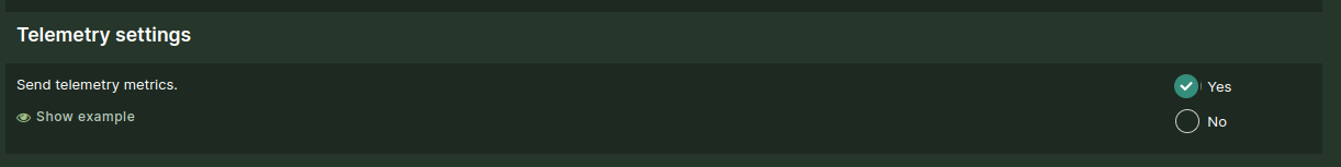 To toggle the feature on or off, navigate to Administration -> Settings -> Features in HomePort and enable or disable the Send telemetry metrics feature.