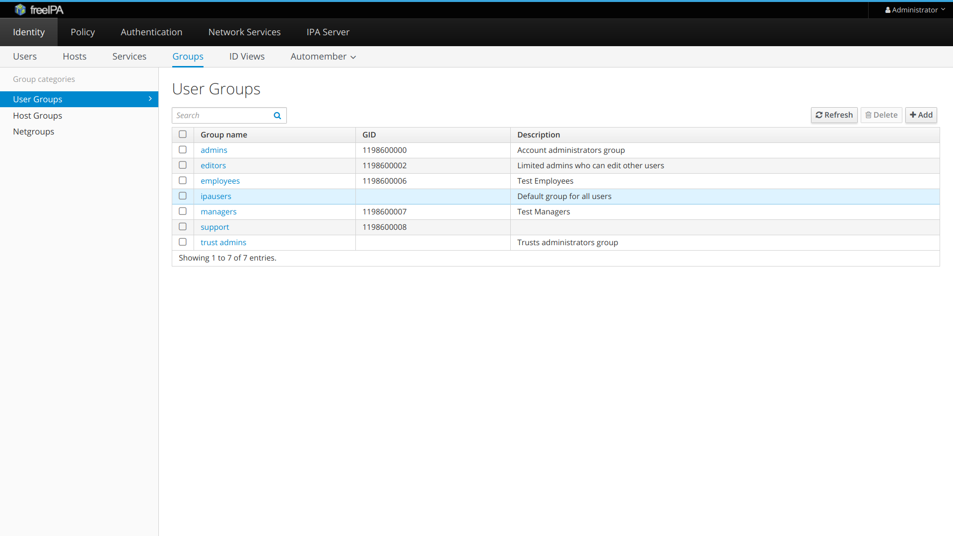 1. Ensure that admins and support groups exist in LDAP server. You may do it using FreeIPA admin UI. FreeIPA groups