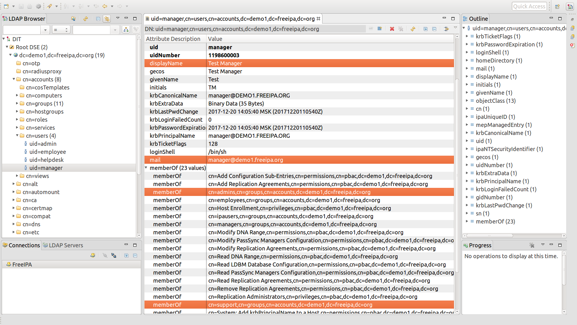Configuration above is based on LDAP server exposed by FreeIPA. To make it work, there are some things that need to be verified in FreeIPA: