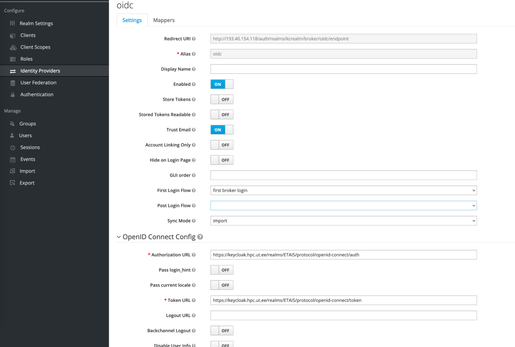 Keycloak configuration