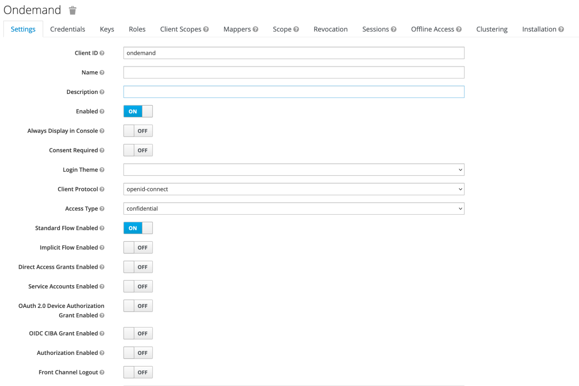 - In Keycloak create a client with authentication enabled for the Open OnDemand.