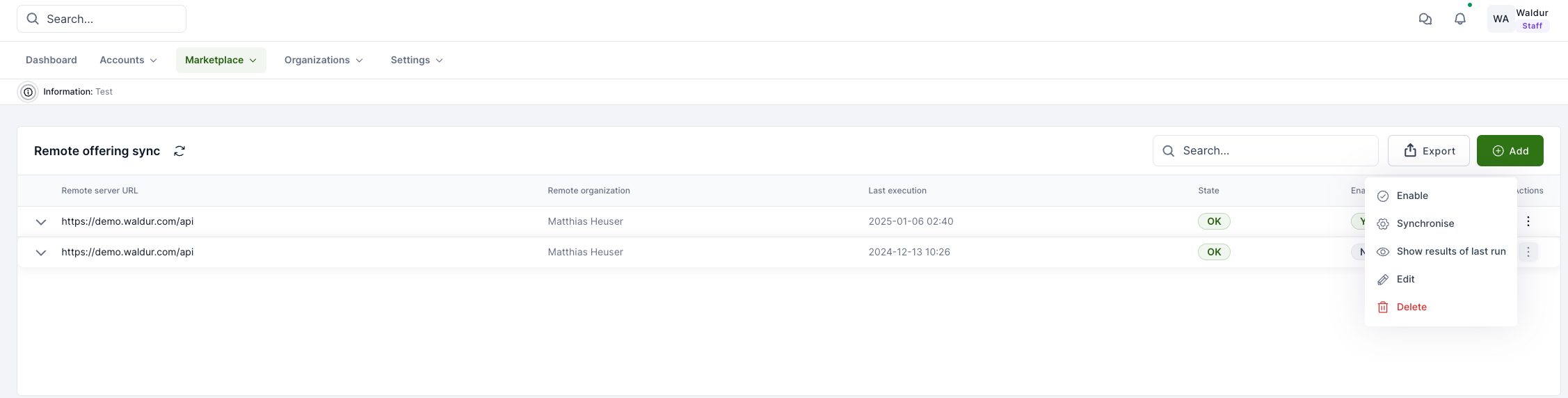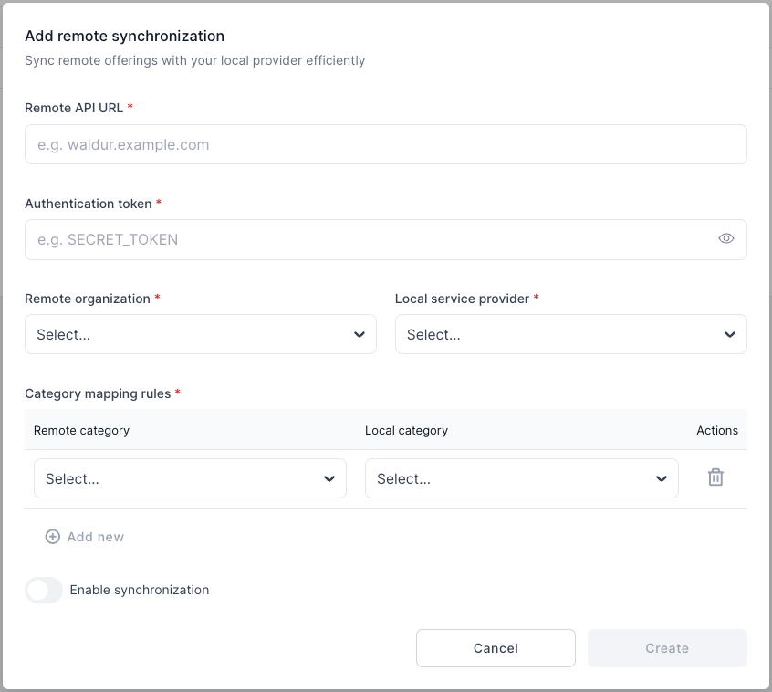 Remote sync functionality allows you to import offering information from another Waldur instance and periodically update it.