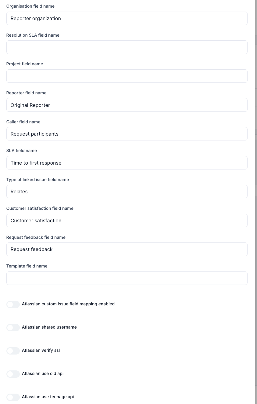 - Atlassian custom issue field mapping enabled – Allows enabling/disabling custom field mapping.