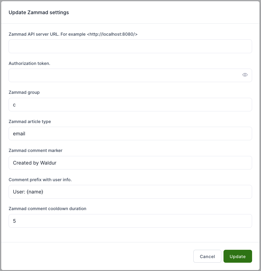- Zammad comment cooldown duration - Time (in seconds) to remove the comment until it is saved in the system.