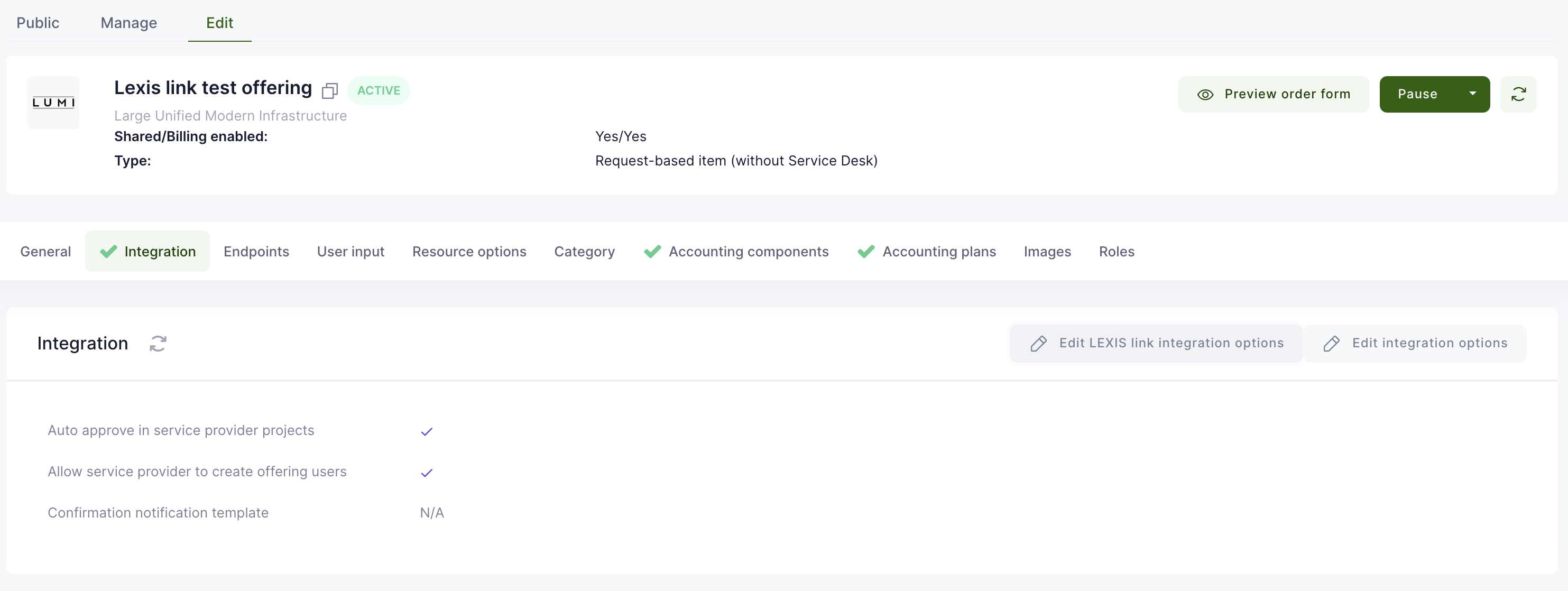 Enabled LEXIS link integrations for offerings.should be enabled in Waldur site settings.