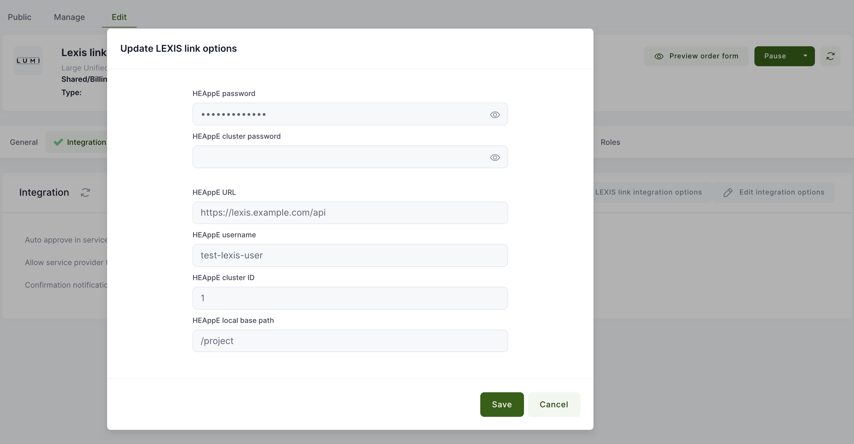 To create a LEXIS link integration with a Waldur resource the API request shown below can be sent (http refers to HTTPie client).