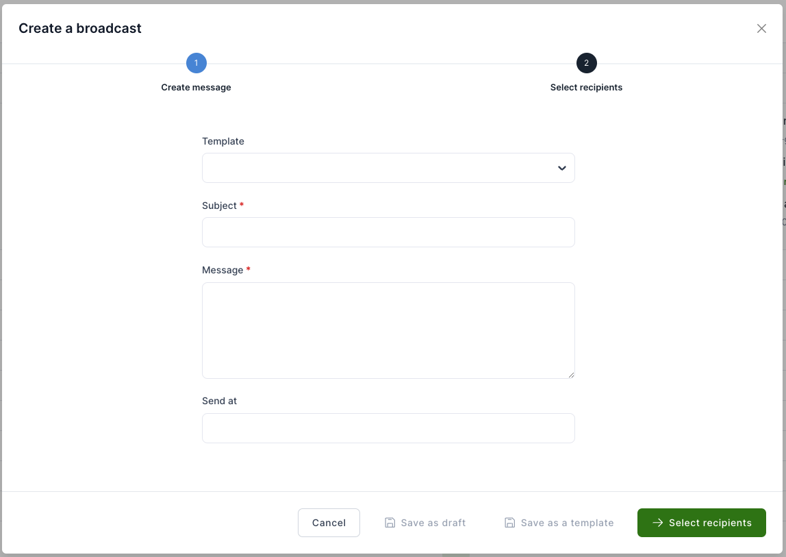 - Send at: Schedule a send time for the message, or leave blank to send immediately