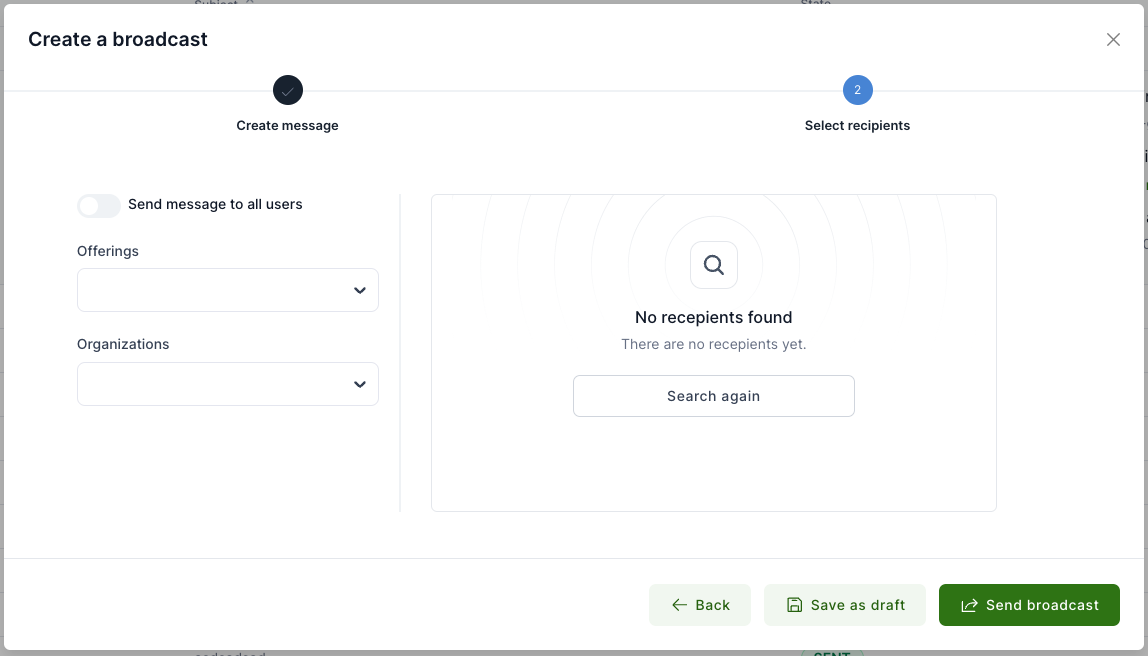 Once you're ready, click Send broadcast.