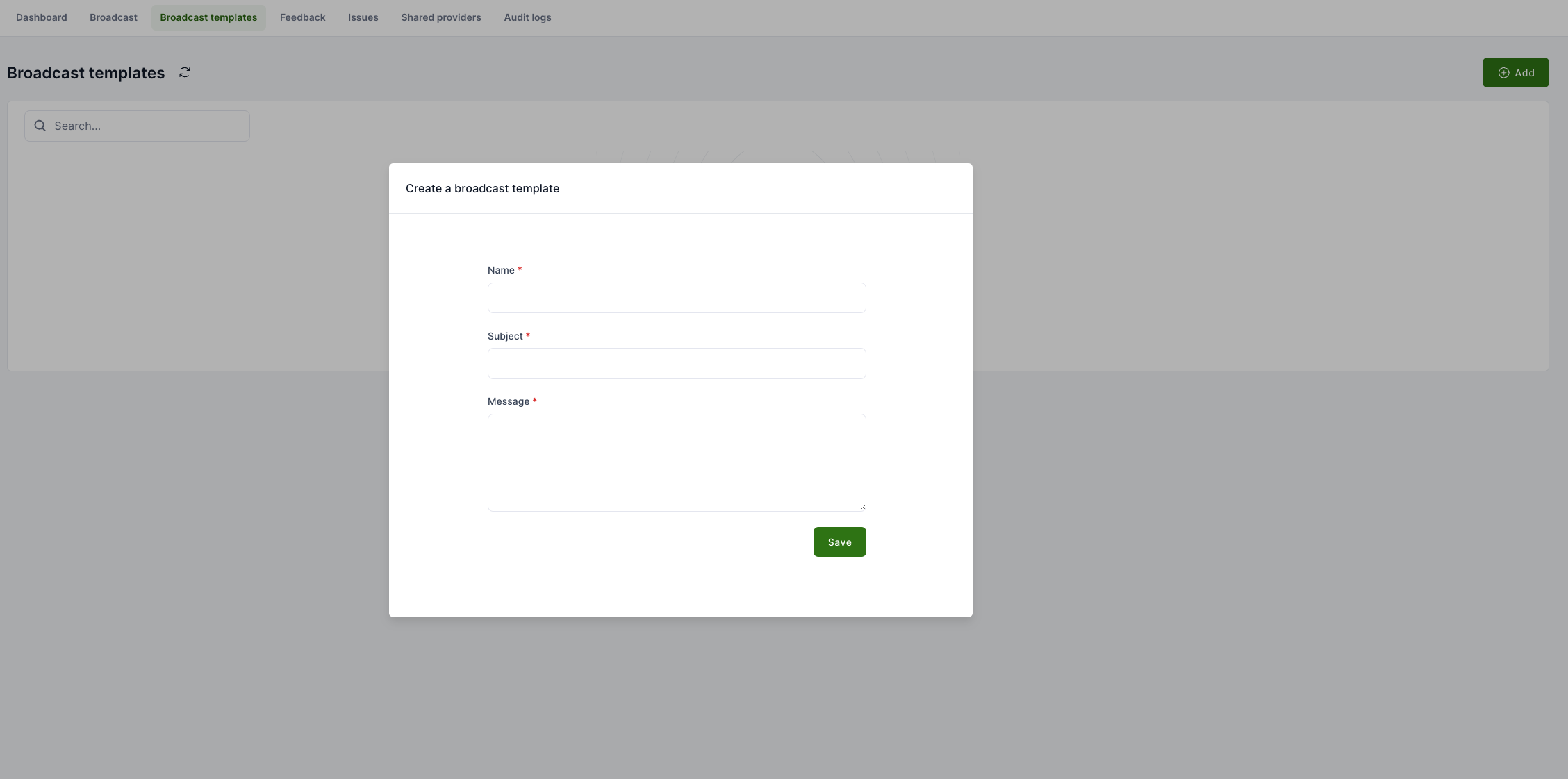 - Navigate to Support → Broadcast templates.