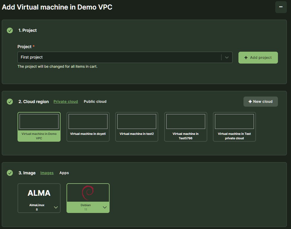 Provisioned VPC resource package will be automatically enabled for the project as a VM provider. For other projects it can be enabled by the organization owner under Provider management within organization workspace.