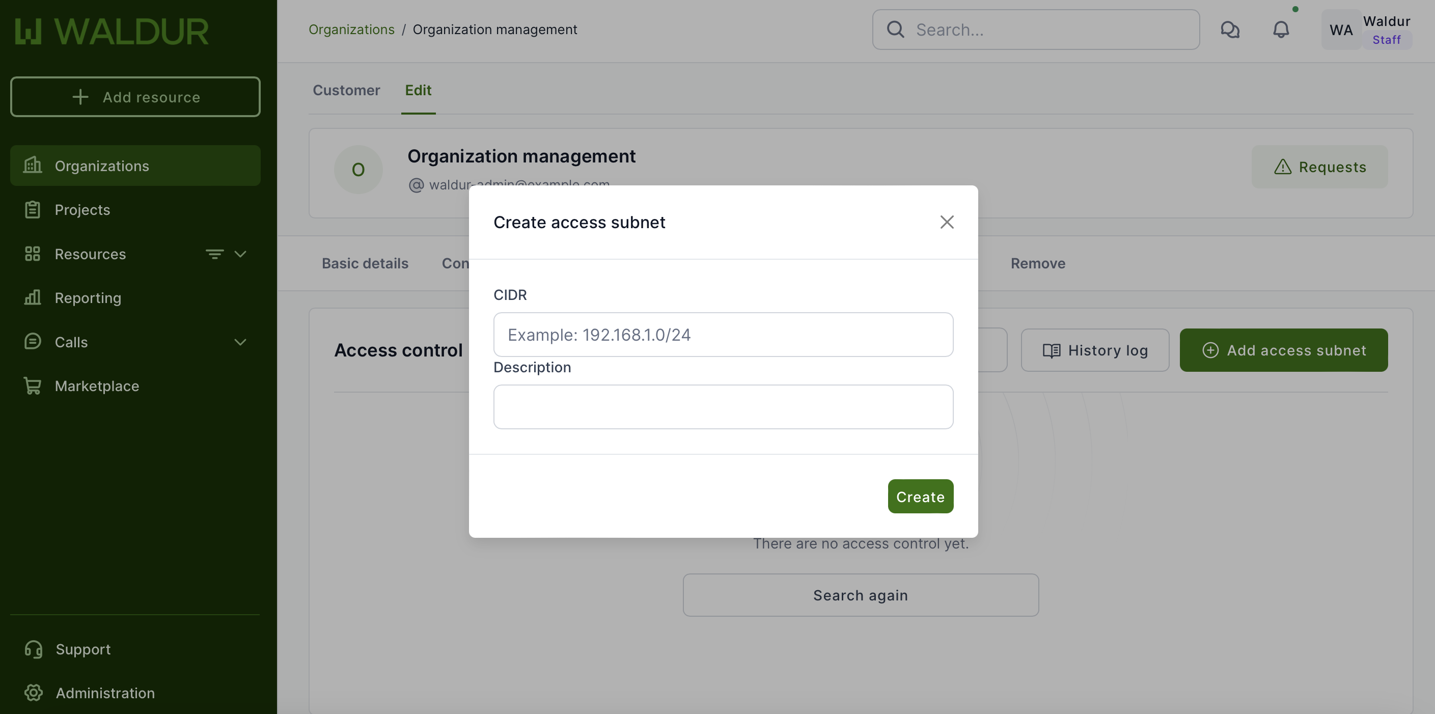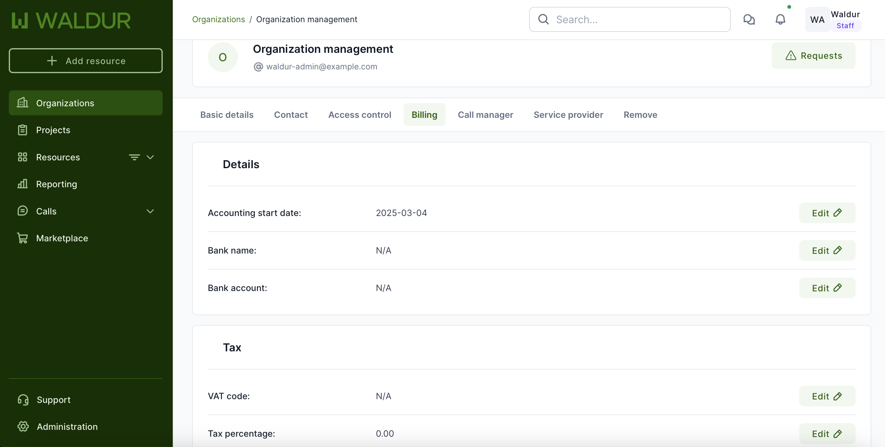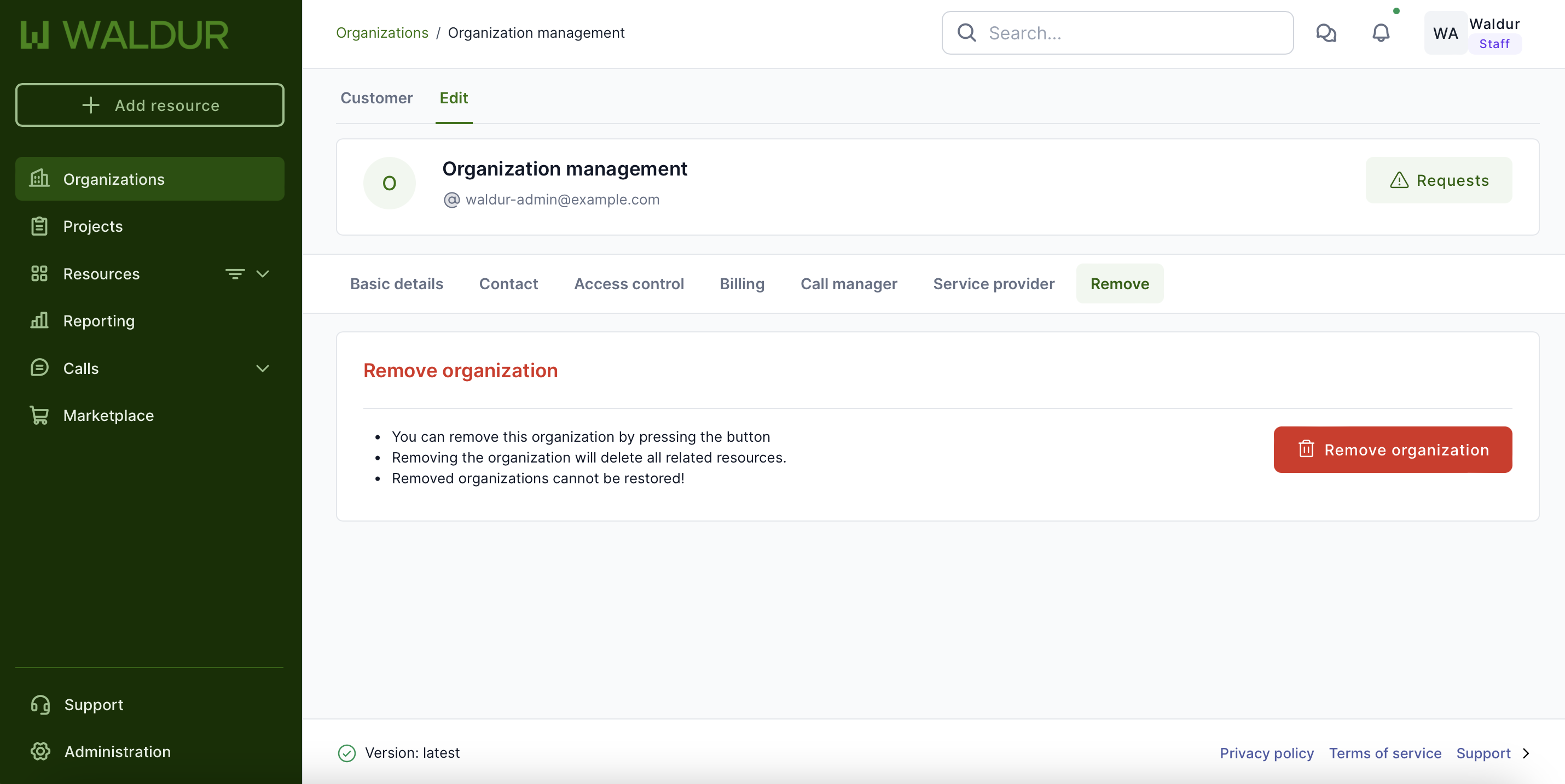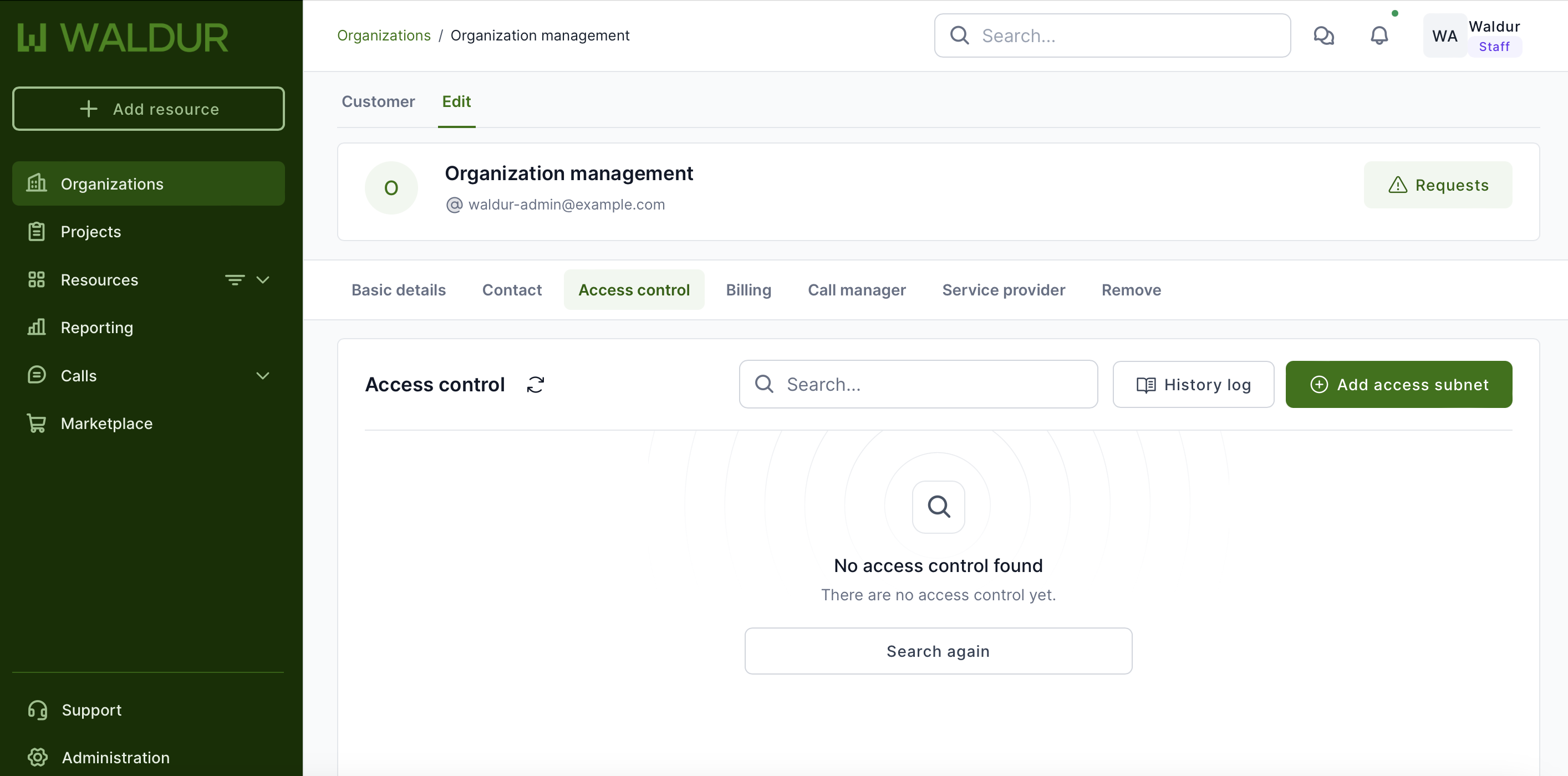 In Waldur, an organization represents a configurable grouping unit that can be adapted to various contexts such as research groups, institutions, departments, or working groups. Each organization has an designated owner who manages the organization's projects, users, and associated resources.