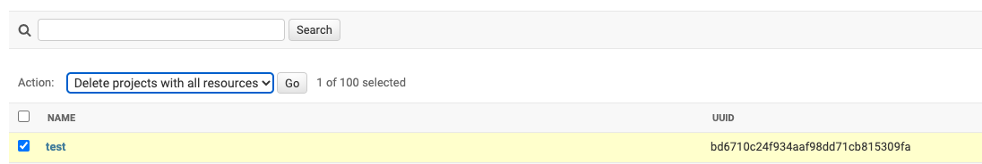 Structure tab->Projects - Filter the projects by organization field (optional)