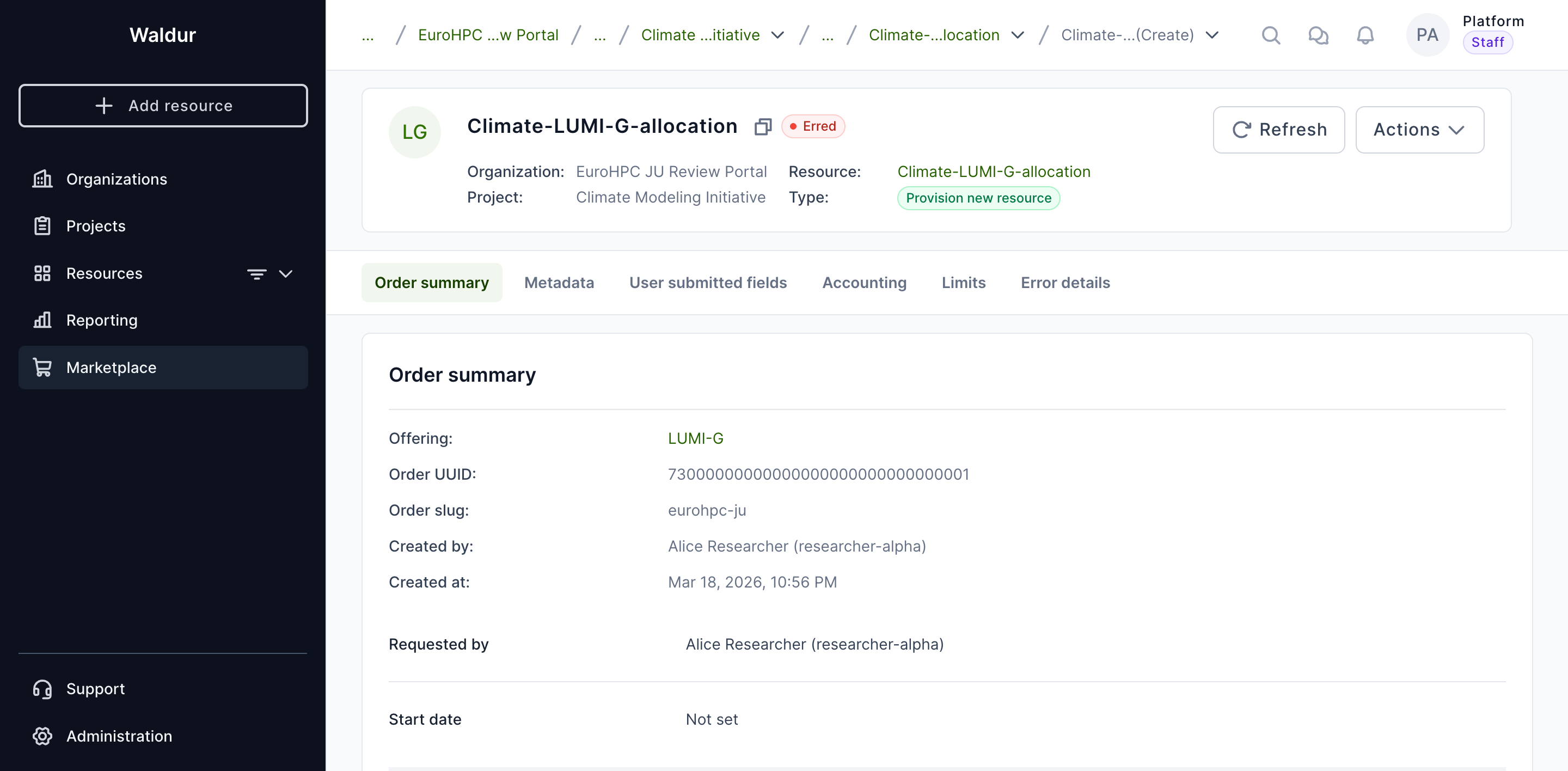 - Approve the order to start resource provisioning